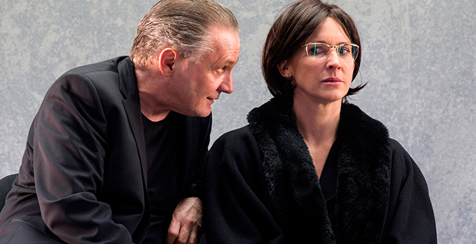 Am Weihnachtsabend findet sich die Philosophin Judith - von Maria Köstlinger mit fragiler Rehhaftigkeit bis eiskalter, arroganter Schärfe gespielt - in einen unwirtlichen Raum gesperrt. Hinten Sichtbeton, vorne Plexiglas, Kameras sind auf die zarte Frau gerichtet, die in ihrem schwarzen Mantel mit edel schimmerndem Pelzkragen in der Mitte sitzt. Flankiert wird sie von einer Polizistin, bis Chef-Ermittler Thomas auftritt. In Herbert Föttingers Regie vergehen Minuten, abzulesen an der großen Wanduhr, weitere, bis das Verhör beginnt. Noch viel mehr Zeit, bis das Verhör von einem Geplänkel über philosophische Fragen wie "Gibt es uns überhaupt?" zu den Gründen der Festnahme vordringt.