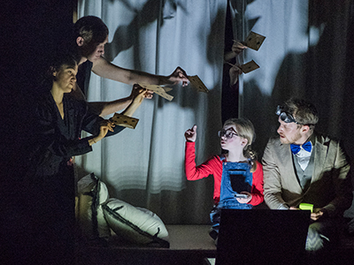 Im Vorfeld jeder Vorstellung werden die jungen Leute gebeten sich Worte zu vorgegebenen Themen auszudenken und diese auf kleine Zettel zu schreiben, um sie dann auf demBühnenboden vor der ersten Reihe zu platzieren. Zur großen Freude der Kinder bauen die Darstellerinnen und Darsteller ihre Worte per Zufallsprinzip in den Text des Stückes ein. Dies bleibt jedoch leider das einzige interaktive Element der Aufführung. Es würde sich hier bestimmt noch mehr aktive Publikumspartizipation anbieten. Solch kleine Makel sollten aber niemanden davon abhalten dieses absolut empfehlenswerte Schauspiel zu besuchen. //