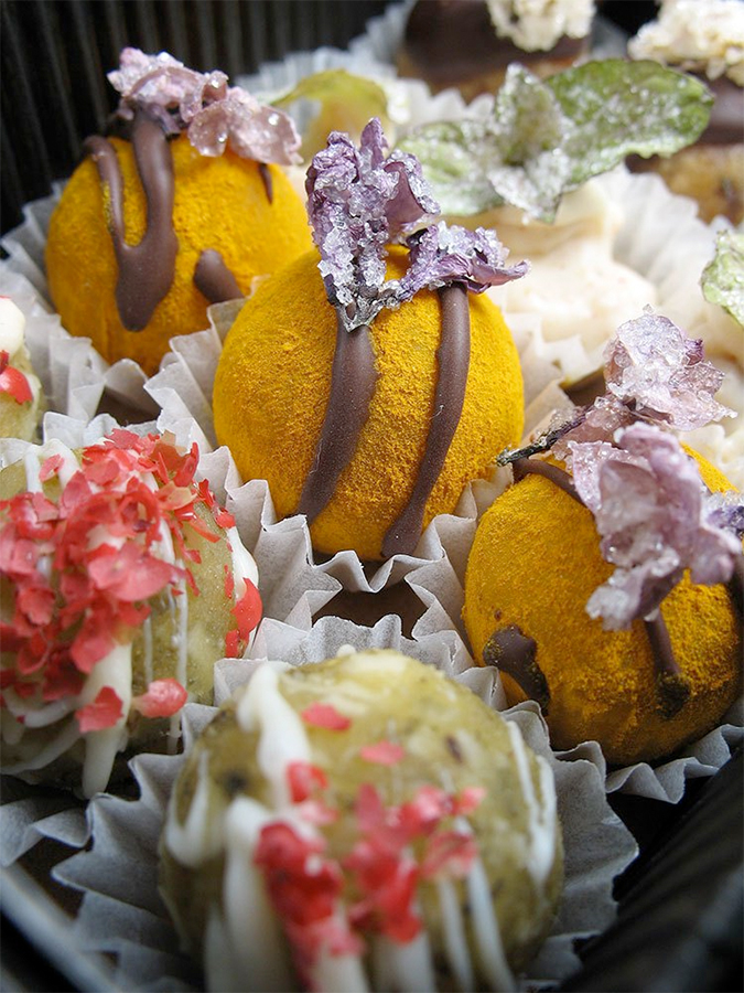 Mit Schokolade, kandierten Blumen und Früchten das Leben versüßen