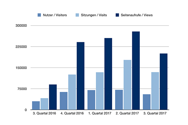 Nutzer, Sitzungen und Seitenaufrufe nach Quartalen
