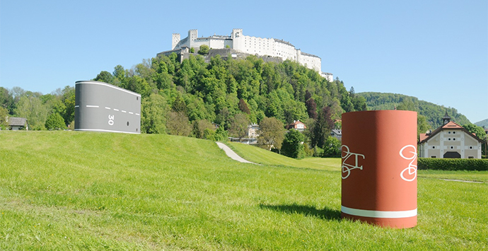 Nach Ablauf des "Projekt Salzburg" entschied sich die Salzburg Foundation ihre Unternehmung als temporäre Projekte fortzusetzen, die jeweils auf dem Krauthügel und in der Kollegienkirche realisiert werden. Apropos Kraut: "Rüben" heißt jene dreiteilige Installation, die aus Rübenerntemaschine samt Rüben und einem aufgestellten, eingerollten Straßen- bzw. Radwegstück besteht, und auch die Festung, unter der sie aufgestellt ist, mit einbezieht: Dem einstigen Faulpelz Leonhard von Keutschach, der die Festung Salzburg ausgebaut hat, soll von seinem Onkel eine Rübe nachgeworfen worden sein. Keutschach besann sich daraufhin, änderte seinen Lebenswandel, wurde fortan fleißig und sodann Erzbischof und Landesfürst. Die Rübe steht im Familienwappen als Symbol für Wohlstand. Nun verfault sie als Vanitas-Motiv auf der Installation von Andreas Slominski unterhalb der Festung. Für eine inhaltlich tiefergehende Auseinandersetzung mit Kunst im öffentlichen Raum in Salzburg empfehlen wir die Führungen mit der Kunstvermittlerin Anita Thanhofer. //