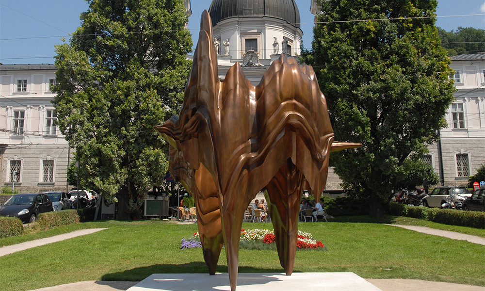 Von Bundesland zu Bundesland sind Förderung und Finanzierung von Kunst im öffentlichen Raum zwar unterschiedlich, zeitgenössische Kunst soll jedoch für jedermann zugänglich gemacht werden - unabhängig von Einkommen und Herkunft. Diese Grundidee entstand erstmals in den 1960er Jahren, als Künstler begannen Kunst außerhalb von Museen zu zeigen.In Salzburg hat sich die Salzburg Foundation der Kunst im öffentlichen Raum angenommen. Gegründet 2001 als Ergänzung zum traditionellen Musik- und Theaterangebot von Salzburg, hat die Privatstiftung in dem für zehn Jahre angesetzten "Projekt Salzburg" pro Jahr einen (insgesamt also zehn zeitgenössische) Künstler eingeladen, ein Kunstwerk im öffentlichen Raum zu verwirklichen. So finden sich 2016 Erwin Wurms "Gurken" und Anselm Kiefers "A.E.I.O.U." im Furtwänglerpark oder Anthony Craggs "Caldera" am Makartplatz. Entlang der Längsseite des Landestheater wandelt Thomas Baumanns Lichtinstallation "Stimono" in Theater und Foyer aufgenommene Geräusche in Lichtsignale um und bindet so auch Menschen ein, die nicht ins Theater gehen (können). Marina Abramovic lädt mit "Spirit of Mozart" in der Verkehrshölle an der Staatsbrücke zu einer meditativen Übung ein.