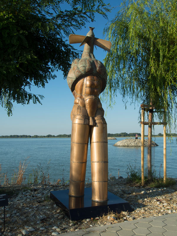 Erreichbar ist das Museum von Bratislava aus nicht nur mit dem Bus, sondern auch mit dem Schiff - zu einem sehr erschwinglichen Preis. Sportliche können auch mit dem (Leih-)Fahrrad kommen, der Radweg führt durch die Donauauen bis zum Museum. "Danube Wings" heißt die monumentale Skulptur an der Inselnase, unter der in den warmen Monaten auf dem fast schon kitschig gepflegtem grünen Rasen Liegestühle aufgestellt sind. Diese Flügel möchte man sich leihen, um von oben noch eine Runde auf das kleine Paradies im Dreiländereck zu werfen. //