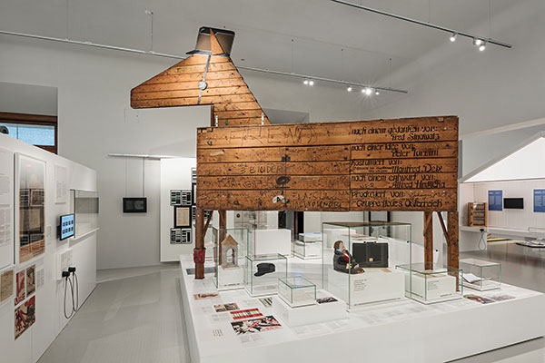 Ein Gedanke, der im großen zweiten Ausstellungsraum wiederkehrt. Grenzen verändern sich: davon zeugen in Europa im letzten Jahrhundert zahlreiche Konflikte. Von der Nazi-Diktatur, im Zuge der Österreich an Deutschland angeschlossen wurde, über den Kalten Krieg, als Österreich an den Rand rückte und zum Grenzgebiet am Eisernen Vorhang wurde bis hin zum Weg ins Herz der Europäischen Union. Interessant: ein Film, der zeigt wie wichtige Ereignisse in Österreich im Ausland wahrgenommen wurden. Wie sich die Österreicherinnen und Österreicher selbst als solche definieren davon handelt eine andere Station - eines von sieben Themengebieten, die wie Inseln im zweiten langgestreckten Ausstellungssaal gruppiert wurden. Betont wird hier die Glorifizierung als Wintersportregion. Von den Erfolgen österreichischer Skifahrer zeugt ein Pokal von Skiass Hermann Maier. Ironisch gebrochen wird die hierzulande vielerorts betriebene Inszenierung einer kassenklingelnden Winteridylle durch eine Selfie-Installation, in der Schneekanonen darauf verweisen, dass vieles Schein ist. Und tatsächlich, nur wenige Meter weiter steht man als Besucher Österreichs größtem Blendwerk gegenüber - die Inszenierung als erstes Opfer des Nationalsozialismus. Objekte aus Konzentrationslagern bezeugen eine Geschichte des Terrors, an dem auch die Österreicher Mitschuld tragen. Eine Schuld, die in der Zweiten Republik nur langsam eingestanden wurde. Quasi als Schandmal ragt übergroß das so genannte Waldheim-Pferd in die Höhe. Ein hölzernes Konstrukt, das im Rahmen der Proteste gegen den damaligen Bundespräsidenten und ehemaliges SA-Mitglied Kurt Waldheim durch die Straßen gezogen wurde. Eine Reihe von Tafeln mit Jahreszahlen der Anerkennung diverser Opfergruppen vom Staat Österreich verdeutlicht zusätzlich wie lange - im Gegensatz zu Deutschland - die Aufarbeitung der Vergangenheit hierzulande dauerte. Kaum zu glauben, homosexuelle Menschen wurden erst 2005 offiziell als Opfergruppe des NS-Regime anerkannt.