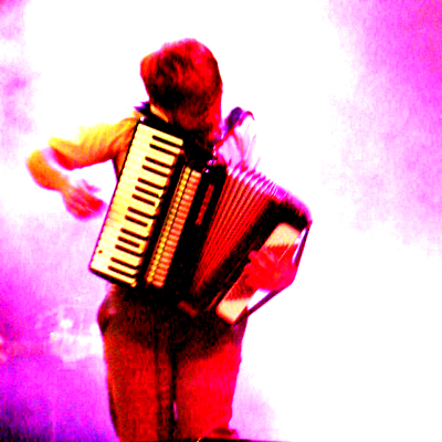 The Blood Arm hielten wohl die meisten ungeplanten Überraschungen bereit. Zuerst schickten sie einen Erzähler auf die Bühne, der allerlei Informationen von sich und der Band in die Menge warf, bis schließlich die Band erschien. Der Sänger hatte zunächst nichts besseres zu tun, als alle darüber aufzuklären, dass es hier "sexy bitches" gab. Er deutete auf zwei Männer ... Eigentlich wäre ich ja sonst schon bei der Aussage wutschnaubend von dannen geschritten. Aber diesmal war die Neugierde viel zu groß und die Band viel zu gut. Der Sänger bat das Publikum sich hinzusetzen, um ihnen "Angela" im Sitzen vorzusingen und verweilte eine Zeit lang auch im Publikum. Zum Abschluss "erlaubte" er allen auf die Bühne zu kommen und mit zu singen und zu tanzen. Die Menge bewegte sich sofort und schon bald amüsierte sich ein guter Teil der Wiesen-Leute in guter Gesellschaft auf der Bühne. Gleich zur Beruhigung: Sie ist nicht eingestürzt. Auch nicht, während der Sänger im Publikum war, und zwei Fans unbemerkt kurz auf die Bühne kamen.