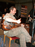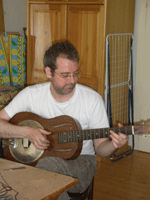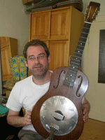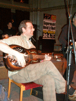 Stimmt die Story, dass du damals schon Aufnahmen gemacht hast und an alle großen Plattenfirmen verschickt hast? Ja, da ich war ich ungefähr 22. Ich habe mir ein simples Aufnahmegerät gekauft und meine Stücke zuhause aufgenommen. Zuhause aufzunehmen ist herrlich, das ist ja jetzt auch wieder groß in Mode. Ich bin das damals total naiv angegangen. Das erste Stück der Kassette war von Blind Willie McTell, 'Ain't It Grand To Be A Christian', es war auch was von Big Bill Broonzy dabei, aber auch schon einige eigene Nummern. Ein Freund hat mich dann ermutigt und ich habe eine richtige Massenaußendung an alle wichtigen Plattenfirmen gemacht. Und obwohl ich eigentlich überzeugt war, solche Demos landen sowieso nur im Mistkübel oder das läuft so wie im Film 'Freispiel', als Alfred Dorfer, der eine Demo-Kassette zugesteckt bekam, zu Roland Düringer sagt: 'Das höre ich mir einmal in einer ruhigen Minute an' (lacht). Trotzdem bekam ich doch immerhin einige Absagen zugeschickt. Teilweise wurden meine Aufnahmen auch gelobt. Von Sony bekam ich die Rückmeldung: 'Das gefällt uns sehr gut, aber solange Ö3 die österreichischen Interpreten boykottiert, können wir so etwas nicht produzieren!' Ich dachte mir: 'Okay, immerhin bekomme ich ein konstruktives Feedback von den Firmen.' Damals war es auch noch sauteuer, eine Schallplatte aufzunehmen. Es alleine, ohne Unterstützung zu bewerkstelligen, war eigentlich ein Ding der Unmöglichkeit. Ohne Produzent ging es nicht. Mit dem Auftauchen der CD ist die Sache billiger geworden. Du hast dich In der Zwischenzeit aber immer mehr zum gefragten 'Sideman' für viele Kollegen [u. a. Hans Krankl, Andre Heller, Monti Beton, Faschings Kuchlradio, Landluft; Anm.] entwickelt und bist immer mehr in die Szene hineingewachsen, richtig? Ja, ich hatte das Glück, dass ich immer wieder interessante Angebote bekommen habe, denn für mich selbst Auftritte zu keilen, war noch nie meine Stärke. Witzigerweise habe ich mich selbst nie als „Sideman“ gesehen. Ich dachte eigentlich, meine eigenen Sachen sind eh bekannt, aber das ist doch manchmal ein Trugschluss. Jetzt kennen mich halt viele Leute von den verschiedenen Projekten, wo ich mitspiele. Zusätzlich habe ich bei manchen meiner eigenen Songs das Problem, mir den Text zu merken, und dann habe ich bei Konzerten aus Verlegenheit halt einen Blues gespielt. Es gibt dazu ein super Zitat von Wizz Jones, auch ein toller Gitarrist: 'I was playing everybody else's songs, because they were easier to learn than mine.' Aber das will ich ändern und möchte mich wieder verstärkt meinen eigenen Sachen widmen. Wie lange hast du an deinem neuen Album 'Scoop & Run' gearbeitet? Zwei Jahre hat es gedauert, das Material für diese CD zusammenzutragen, die Aufnahmen dauerten dann nur zwei Tage, abgesehen von den Gastbeiträgen von Freunden wie Hans Theessink, Gerry Schuler, Klaus Pérez-Salado oder Dakota Dave Hull, die dann noch dazu gespielt haben. Aufgenommen wurde 'Scoop & Run' [2009; Buntspecht; Anm.] hauptsächlich in Wien im Studio von meinem alten Freund Erich Spitzer, der meiner Meinung nach, was Akustik-Aufnahmen betrifft, in Österreich der Beste ist. Er hat auch mitproduziert. Dakota Dave Hulll hat seinen Beitrag in Minneapolis aufgenommen. Besonders stolz bin ich auf den Beitrag von Hans Theessink bei der Nummer 'Western Town', er hat für die Aufnahme eine alte, sehr wertvolle Mandoline verwendet. Wer ist Dakota Dave Hull, ich habe noch nie von ihm gehört? Dakota Dave Hull ist ein Gitarrist und 'Musician's Musician' aus den Vereinigten Staaten, der auf sehr vielen Produktionen berühmter Kollegen mitgespielt hat, aber über die Musiker-Szene hinaus nie sehr bekannt geworden ist. Dave spielt klassische amerikanische Fingerstyle-Gitarre. Er war z.B. auch ein enger Freund von Dave Van Ronk, hat aber auch schon mit Leuten wie Utah Phillips gearbeitet. Im Frühjahr 2010 wird er auf Tour nach Europa kommen. Außerdem ist er wie ein wandelndes Lexikon, was alte Gitarren aus den USA der letzten 50 Jahre betrifft. Dakota Dave Hull hat selbst eine gigantische Sammlung alter Instrumente zuhause. Für Scoop & Run“ habe ich einen Song von mir geschickt, den wir schon einmal bei einem gemeinsamen Konzert gespielt haben, und er hat seinen Part bei sich zuhause im Studio dazu aufgenommen. Für so was ist das Internet großartig! Erzähle doch noch etwas über das neue Stück 'Don't Touch My Precious Plastic Bags'! Das erinnert ja ein wenig an Marcel Prawy? Der Song hat mit vielen Sachen zu tun. Zum einen stammt er aus der Zeit, als ich einige Duo-Konzerte mit Andi Fasching gemacht habe. Er hatte einen absolut schrägen Song mit der Textzeile 'Jo, da sitze ich zuhause mit der Pumpgun und den Plastiksackerln'. Das ist irgendwie bei mir hängengeblieben und hat mich nicht mehr losgelassen. Die nächste Assoziation war dann Marcel Prawy, den ich einmal zufällig getroffen habe, in einem Caféhaus im 4. Bezirk, und er hatte tatsächlich Plastiksäcke mit! Und das dritte war meine eigene Wohnung. Da ist es oft sehr chaotisch zugegangen, und alles war in Plastiksäcken verpackt. Trotzdem habe ich immer wieder Musiker aus aller Welt zu Besuch gehabt, die nach ihren Konzerten in Wien bei mir übernachtet haben, und von den Plastiksäcken fasziniert waren. Das ist so weit gegangen, dass US-Gitarrist Woody Mann, als ich ihn einmal vom Flughafen abgeholt habe, gesagt hat, er will sofort meine Wohnung sehen, denn er hat von den Kollegen schon so viel darüber gehört! (lacht) Unter Musikern war meine Wohnung also schon Legende. Das alles hat dann zu dem Song geführt. Seit einiger Zeit entwirfst und baust du Gitarren auch selbst? Wie kam es dazu? Instrumentenbau hat mich immer schon interessiert. Ein verstorbener Freund von mir, Roland Kogler, hatte seine Werkstatt in der Nähe meiner Wohnung. Jeden Tag am Vormittag, wenn er in seine Werkstatt ging, hat er mich zu einem Kurzbesuch mitgenommen. Ich habe dann in seiner Werkstatt Gitarre gespi