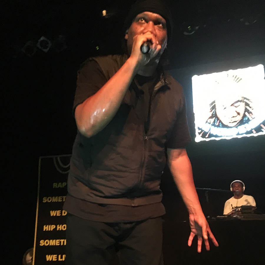 KRS-One, a.k.a. The Teacher started the concert with a big bang: Energetic like a Duracell bunny, he spit bars like his life depended on them and constantly moved from one side of the stage to the other, engaging the whole audience, from left to right, front to back, repeatedly asking whether Hip-Hop was here or rather over here (pointing to one side first and then the other). It was great to see how he also engaged his son in his performance and how both communicated and understood each other non-verbally. In good old KRS-One tradition, he shook his fans’ hands right in the beginning of his concert acknowledging everyone who was able to get his attention. KRS-One delivered the Hits the audience had longed for, but also impressed the crowd with some Freestyles that could not have been any wittier, sharper or more fiery. It would not have been a KRS-One concert without him trying to convey a message to his audience: He emphasized the crucial role of knowledge and how you do not need to be an academic to get access to knowledge. He named school drop-outs now on top of the world, who have made it so far because they found a way to educate themselves.
