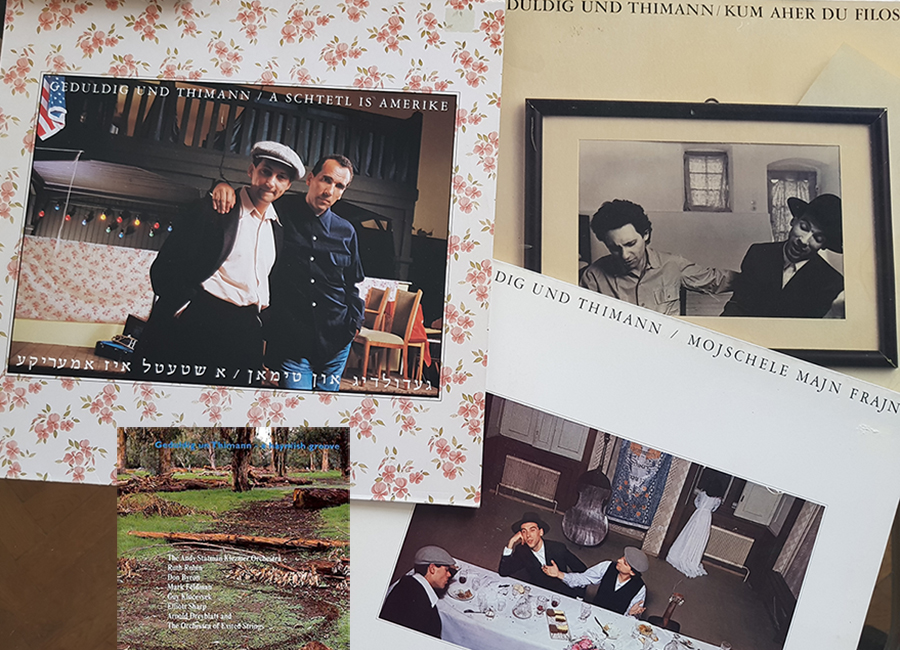 Erstmals konfrontiert mit jiddischer Musik wurde ich mit dem zweiten Album von Geduldig und Thimann, "Mojschele majn Frajnd" (EMI, 1980), produziert von André Heller und erneut unter der musikalischen Leitung von Teddy Windholz. Diese Lieder, und noch mehr die darauf erzählten Geschichten und die zugrundeliegende Sprache, lösten ein ganz starkes Wohlgefühl aus.