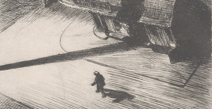 Edward Hopper, Night Shadows, 1921, Print Collection, Miriam and Ira D. Wallach Division of Art, Prints and Photographs, The New York Public Library; Edward Hopper, Self-Portrait, 1925-30, Whitney Museum of American Art, New York