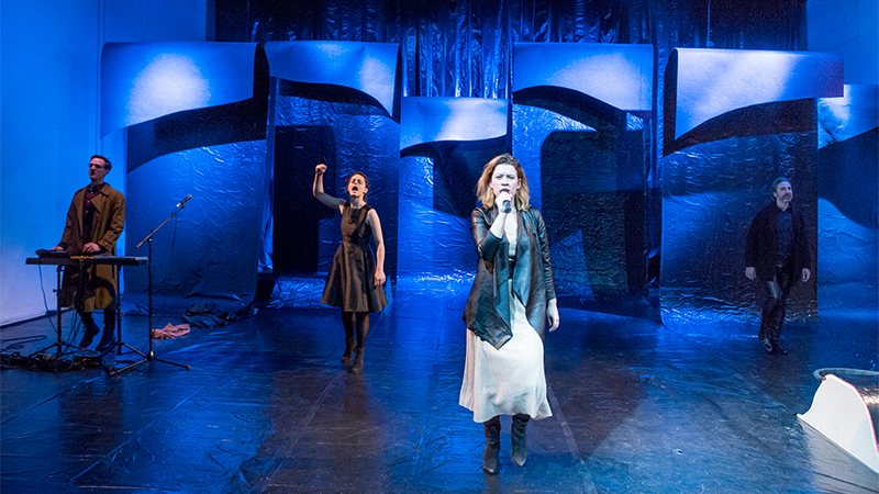 Wie man einen solch sprachlich stark verdichteten Roman mit großem Können und steter Präsenz umsetzen kann zeigen Anne Grabowski als Medea, Petra Staduan als Agameda und als Glauke, Jan Hutter als Jason und als Presbon, sowie Jens Ole Schmieder als Akamas und als Leukon. Viele Stimmen, die im Bühnenstück zu hören sind und sie alle reflektieren und rekapitulieren die Geschichte im Sinne eines Rechenschaftsberichts eines Frauenschicksals in einer machtgestützten Männergesellschaft.